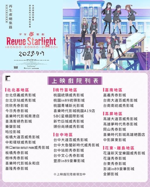 標題[情報] 《少女☆歌劇》全台上映戲院列表