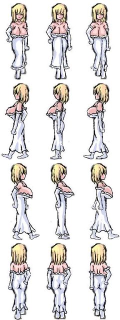 測試用的行走圖,我還在考慮要不要用這個,因為畫這個很費時、效果也沒有特別好。