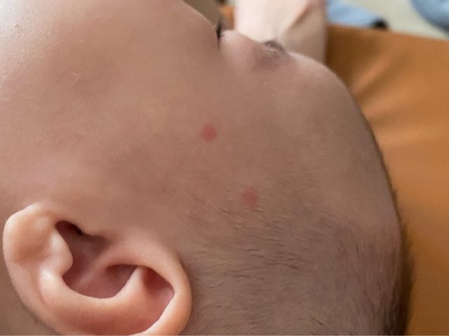 昨天幫寶寶洗澡看到臉上有兩顆疹子,