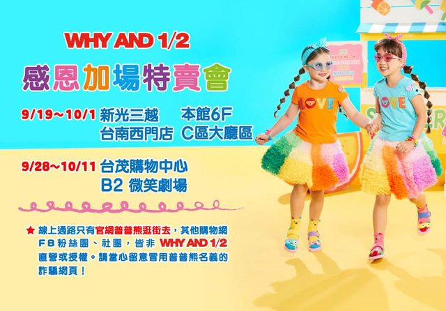 好康主旨:WHY AND 1/2童裝 實體特賣會