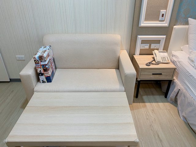 一張小雙人沙發及桌子