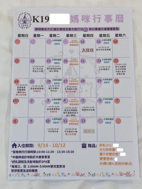 還有還有,入住期間的行事曆