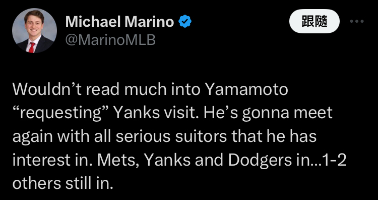 推 gandalflee: 我山本由伸從小有個洋基夢12/18 09:20