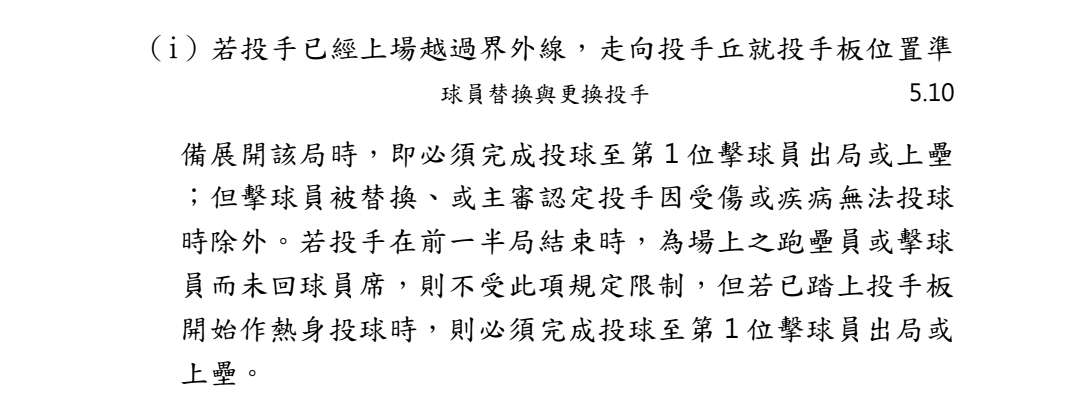 → otaku32286: 看原文的第三點應該是指局間換投時,若新投手在剩不到 12/22 04:04