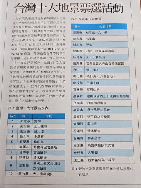 非棒球文(2/5) 前陣子象鼻岩的新聞 想到好久之前讀過的一本書 在聊台灣地景地理的 今天在圖書館順便挖了一下這本書 初版是103/7 差不多就是十年前的著作 當時的投票/專家排名名次 https://i.imgur.com/AWv1FZf.jpg