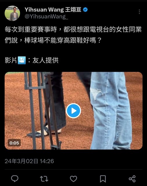 → fman: 還好吧,你說晚宴那種正式活動穿高跟鞋就算了,現在平日台灣 03/02 14:38
