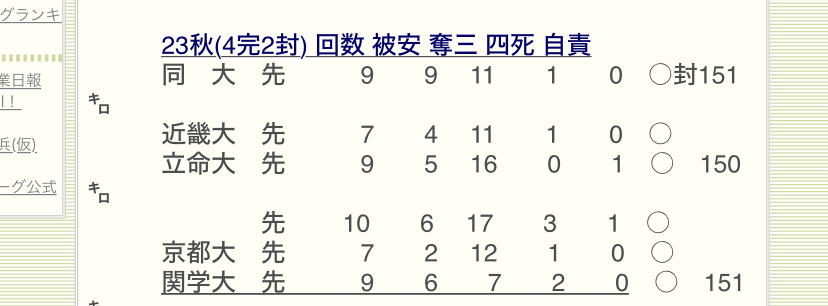 大學目前 19勝2敗 185.2IP 129H 22ER 242SO 36BB ERA 1.07 WHIP 0.89