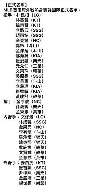 標題[分享] MLB海外戰熱身賽韓國戰名單