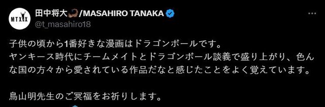 標題[閒聊] 田中將大悼念鳥山明先生