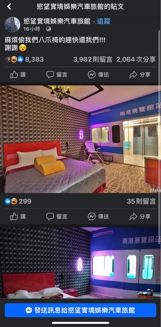 標題[閒聊] 汽車旅館八爪椅被偷