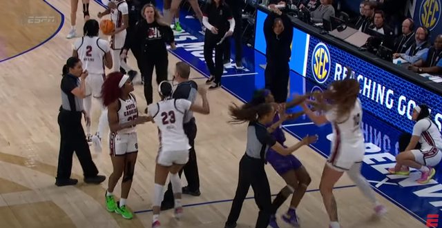 到對方,引起南卡大學隊員不滿,另一名球員卡多索(Kamilla Cardoso)從旁出現,把