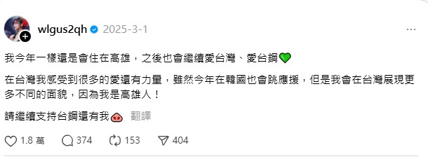 → tyrone0923: 來台灣的韓啦哪個會說不愛台灣,這跟情勒啥關係 04/10 15:23