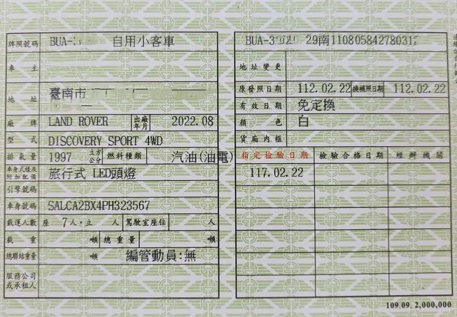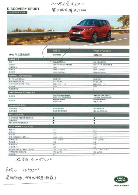車款型式/排氣量:discovery sports P200SE 富士山白/2000cc