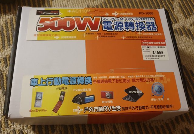 物品名稱: 車上500W電源轉換器PD 1066