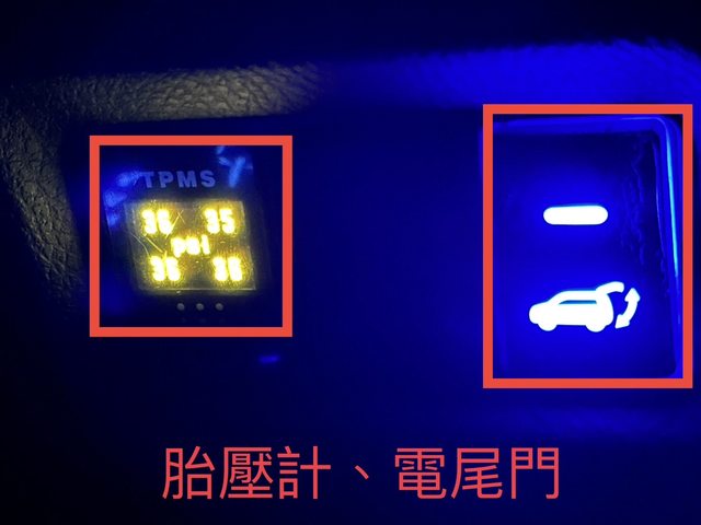 卡鉗、輪框、音響、電動尾門、迎賓燈、安卓機、卡夢飾板、胎壓偵測、鍍膜、前後行車記錄器、隔音配備(雙層隔音管+四門制震隔音+四輪拱隔音+隔音條)