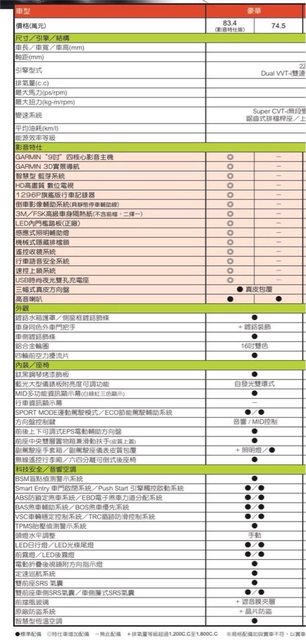 車款型式/排氣量:Altis / 1798