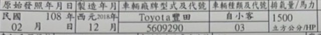 車子為2018/12出廠,2019/2領牌。
