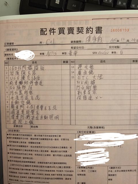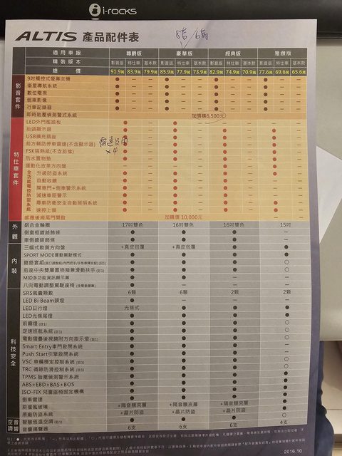 車輛品牌/產地/出廠年月: altis 2016年11月