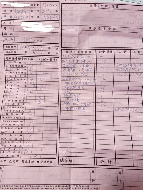 接手後,預防性更換大約花了6萬多,目的希望家人能平安。車況良好,無待修,定保檢
