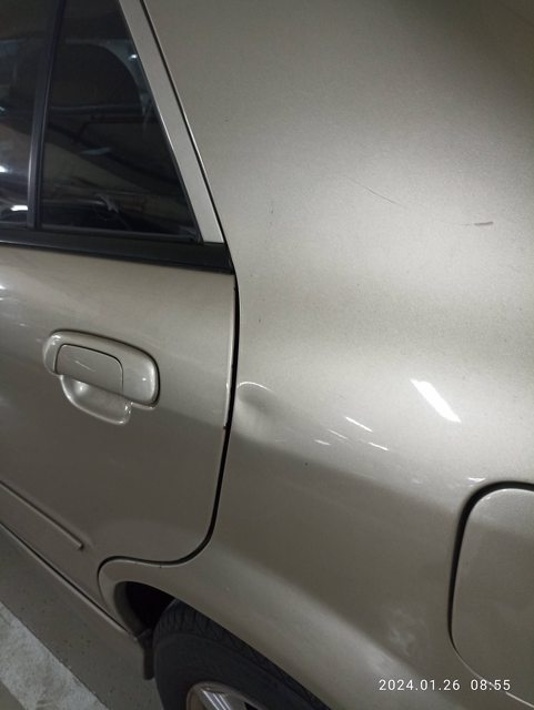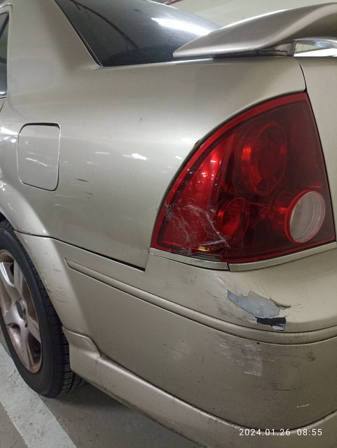 ⑵車身漆面多處老化掉漆,前左葉子板稍微位移,左後尾燈破損及左後葉子板擦痕