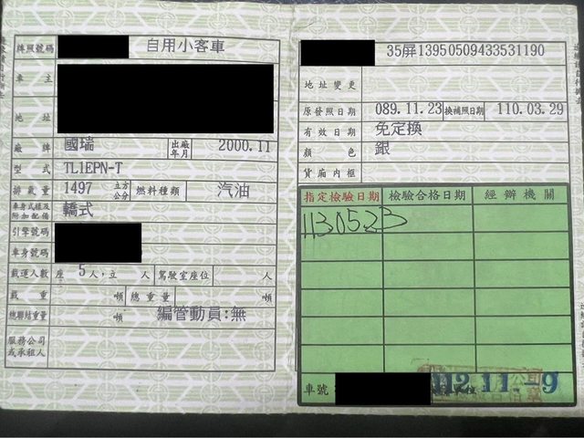 原使用情形:自用車