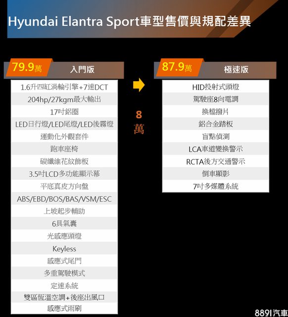 車款型式/排氣量:Elantra sport 極速版/1.6T