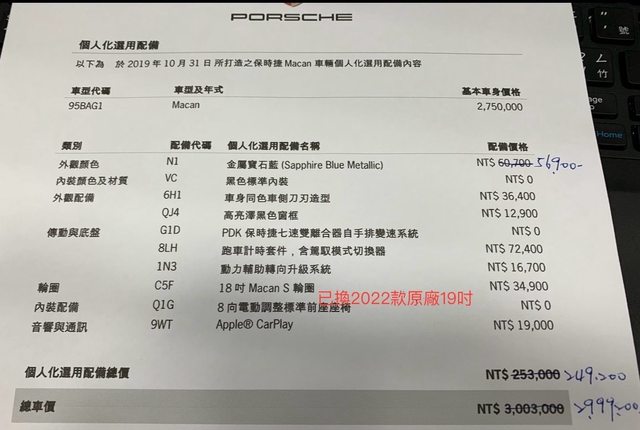 標題Re: [售車] Macan 2.0T 總代理/2019/寶石藍