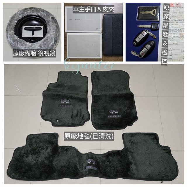 原廠後視鏡、原廠備胎、原廠地毯(已清洗),配件保留完整。
