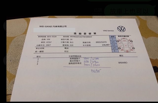 上面是前車主賣給我前不久整理的工單