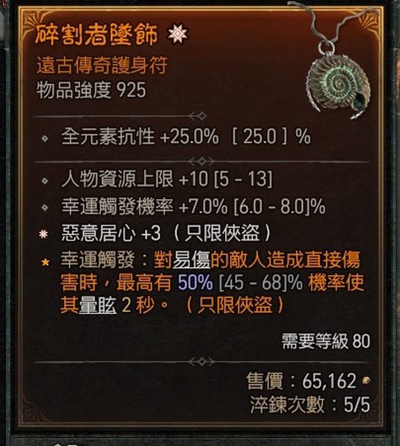 標題Re: [競標] D4 俠盜 太古惡意+7%幸運 項鍊