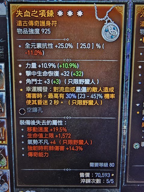 : 物 品:三太古項鍊 太古力量10.9% 太古角鬥士+3 太古擊中恢復+32