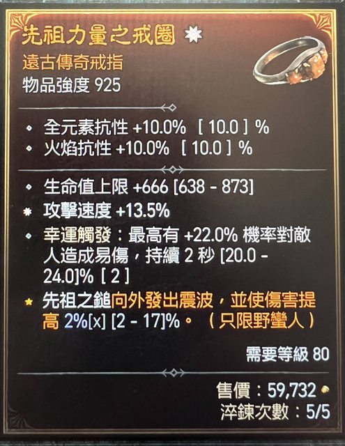 : 標題:[競標] D4太古攻速+幸運觸發+生命戒指
