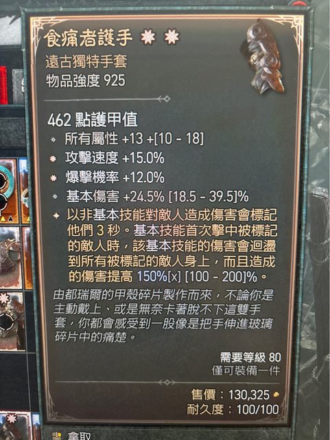 標題[競標] D4 雙太古(攻速.爆率) 150%食痛者 手套
