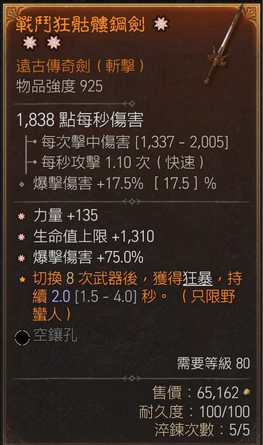 標題[競標] D4 S4三太古單手劍(力/命/爆傷)