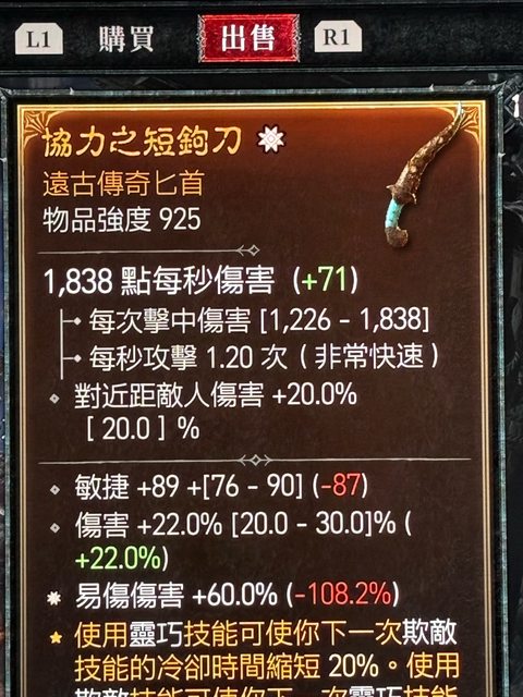 2. 太古易傷匕首 1E (售出)