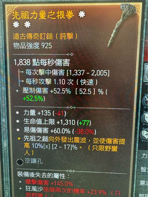 標題[競標] D4 單手鎚(力量生命易傷三太古)