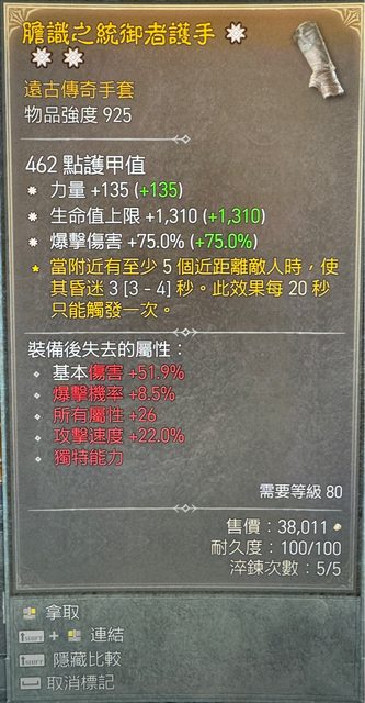6.三太古手套 力量+爆傷+生命 5億