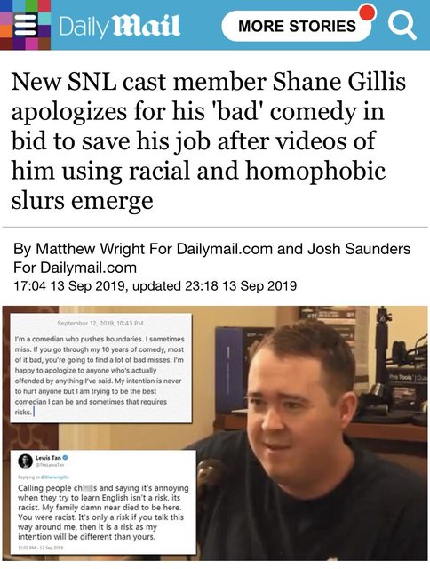 族群的笑話,即使SG在隔天就發文道歉,還是引起不小反彈,逼得SNL忍痛開除他。