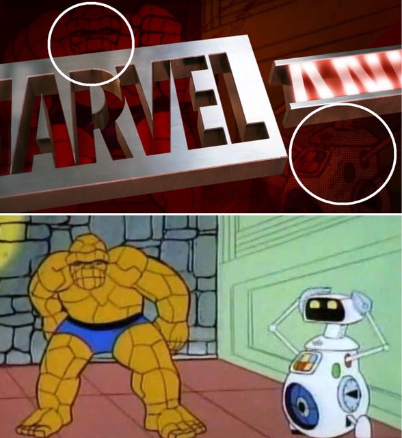 另外也出現了1978年《驚奇四超人》卡通的石頭人;而右下角的機器人名為 H.E.R.B.I.E