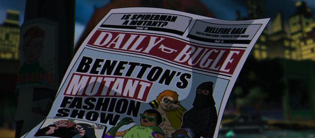 「人類之友」組織基地外,一張《號角日報》的報紙飛過,左上方的欄位寫著「蜘蛛人是