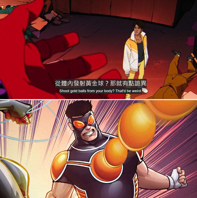 他的變種能力就是從身體發射出黃金色的球。