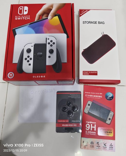 ★【物品名稱】:Switch oled白+收納包+保護貼+搖桿帽