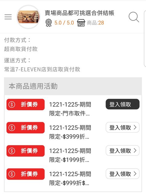 使用7-11 OP會員結帳前領取全站折價券(折價券使用期限12/21至12/25)