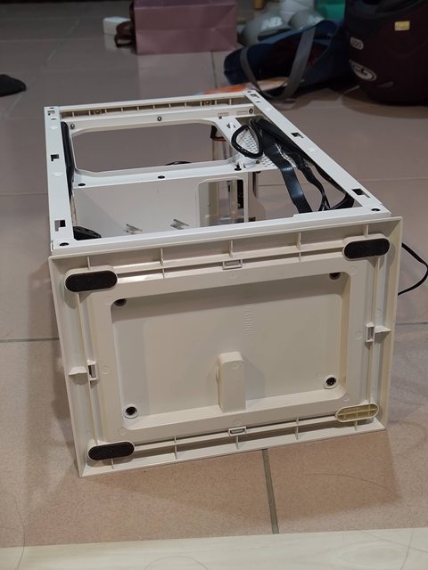 外觀不新,橡膠腳墊掉了一個,配件外箱都不見了,螺絲可能就只有還鎖在機殼上的