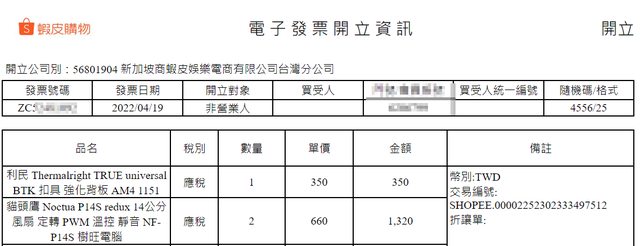 Notcua 貓扇 P14S 購買證明︰