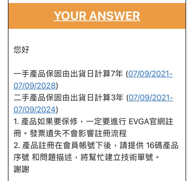 顯示卡:2026/3 詢問官方轉手以出廠日計算