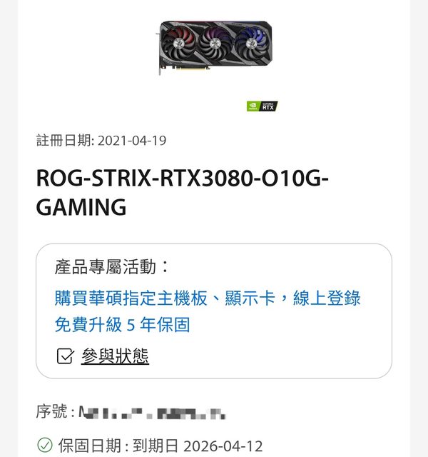 標題[賣/台南/皆可] 售ROG-STRIX-RTX3080-O10G-GAMIN