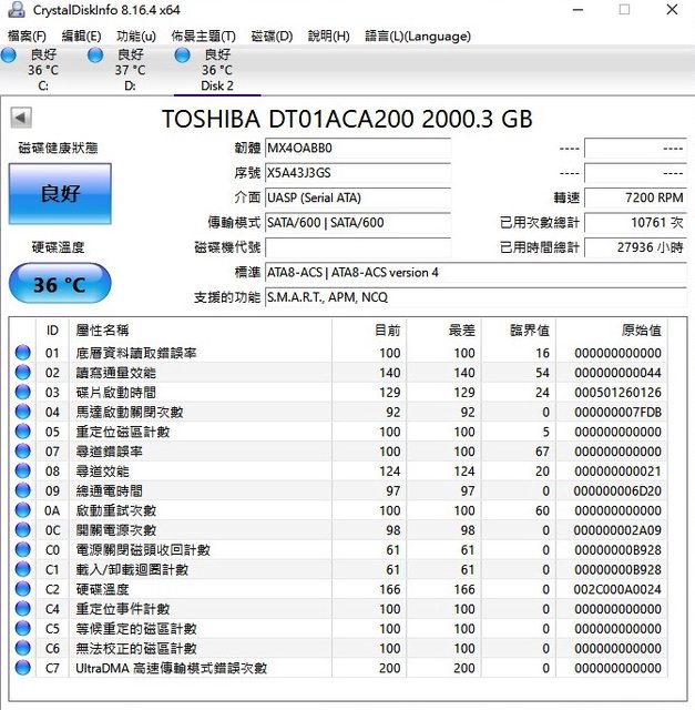 ◎硬體型號:Toshiba 東芝2TB 3.5吋SATAIII 硬碟