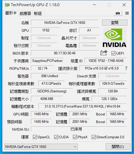 ◎硬體型號:GTX 1650 4GD5