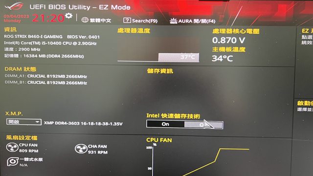 主機板: 華碩 ROG STRIX B460-I GAMING